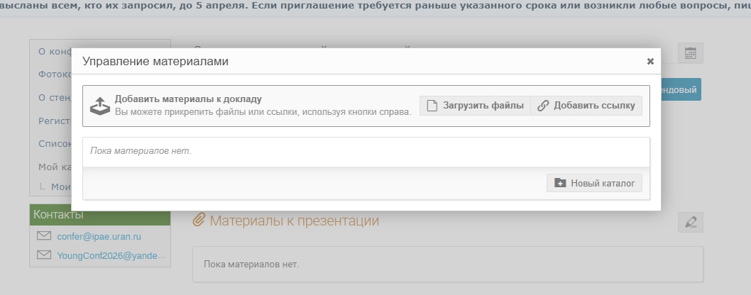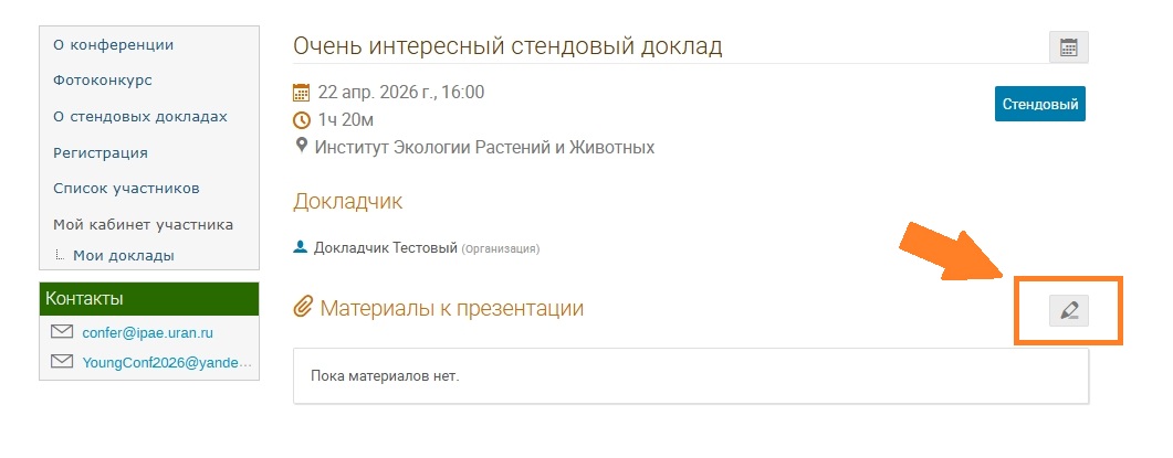 Добавить материалы к своему докладу в разделе «Мои доклады».